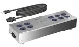 今回のPB-HR2000は、HR1000の上級に位置する最上位の電源ボックスとして企画され、HR1000ではコンセント面でのみ搭載していたネオフェードを、底面以外の5面および4点のフットに採用。ネオフェードの電磁アース効果により電源由来のノイズ低減を効果的に行なうとする。ネオフィードには、微細な不要振動をスムーズに吸収する作用もあり、その点での音質向上効果も高いという。