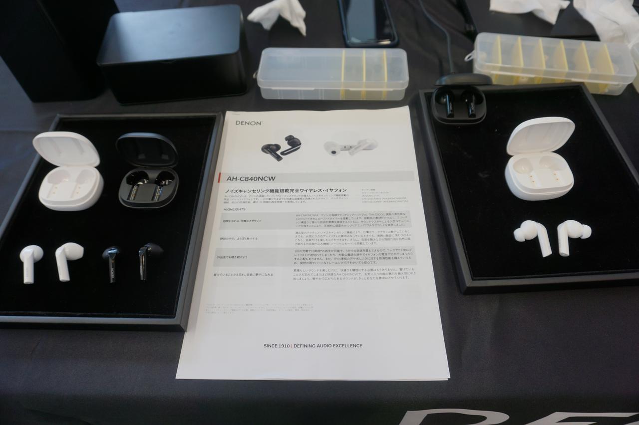 6Fフロア〈604〉のDENON、Bowers & Wilkinsブースでは、4月に発売したばかりの新製品を展示。DENONのブースでは、4月2日に発売したばかりのワイヤレスイヤフォン「AH-C500W」、「AH-C840」をそれぞれ試聴することができた。