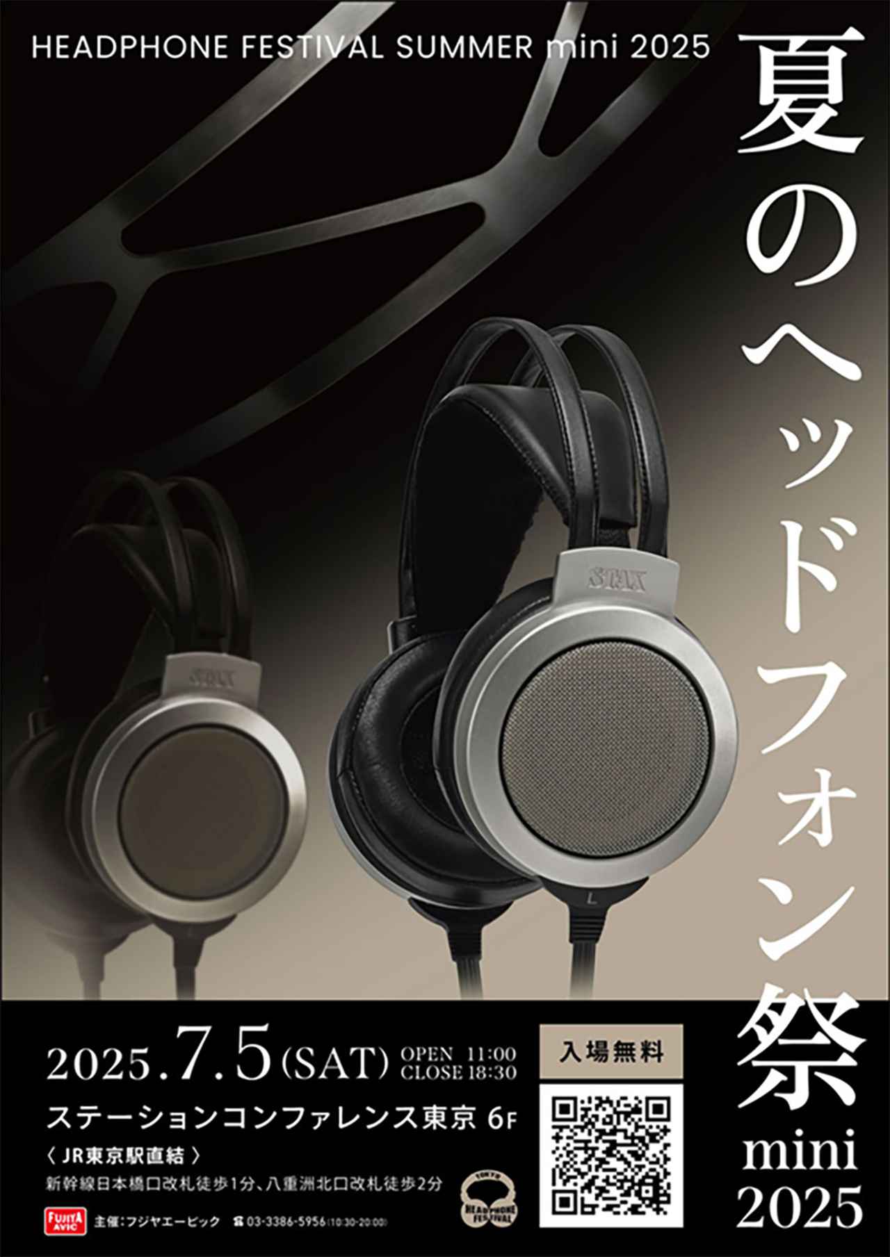 フジヤエービックは、来たる2025年7月5日(土)に、展示会イベント「夏のヘッドフォン祭mini2025」を、東京・八重洲北口直結のイベント会場「ステーションコンファレンス東京」6Fで開催する。