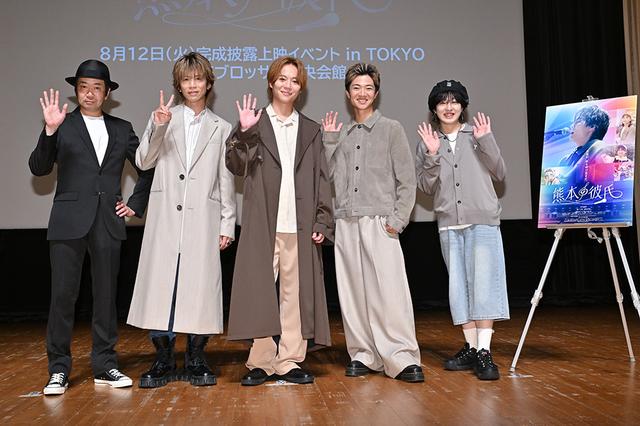 映画『熊本の彼氏』(2025年10月10日熊本先行公開、10月24日全国公開)の完成披露上映イベントが8月12日(火)、東京・銀座ブロッサム中央会館で行なわれ、主演の杉本琢弥、共演の諸星翔希(7ORDER)、小山銀次郎、RYUNOSUKE(ROYAL NOVICE)、メガホンをとった熊谷祐紀監督が出席した。