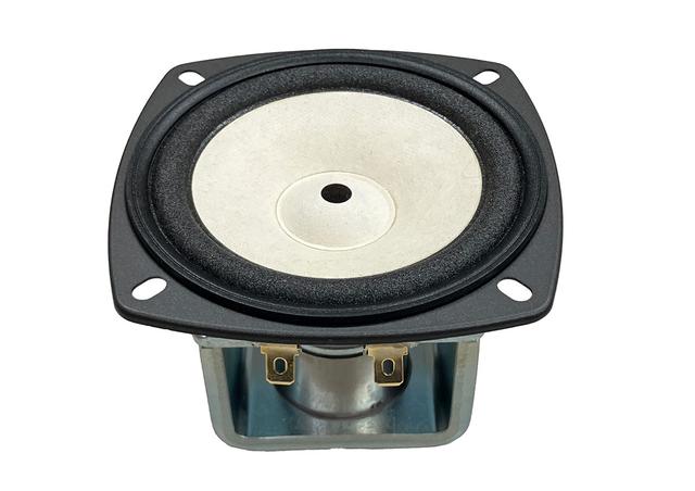 ●繊維が細くしなやかで密度の高いESコーンを2層抄紙とする事で、軽量ながら更なる剛性の向上と内部損失の確保を実現。基層に長繊維のパルプを主体にかさ高の構造による高剛性化と内部損失の保有を両立させ、表層には短繊維のパルプを配合し、振動板表面の伝播速度を高めている。これにより中域の明るく張りのある音色はそのままに、立ち上がりが良く切れのある高音と厚みのある低音の再生が可能に