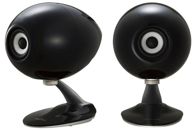直径8cmのフルレンジユニットを備えた卵形スピーカー。前モデルよりも内部容積を400cc増しているがサイズ感としては前作のまま。あらゆる面に改良の手が入り、音楽のリアルな再現性をさらに高めた。改良されたスタンド部の角度調整のしやすさも好感。(鳥居)