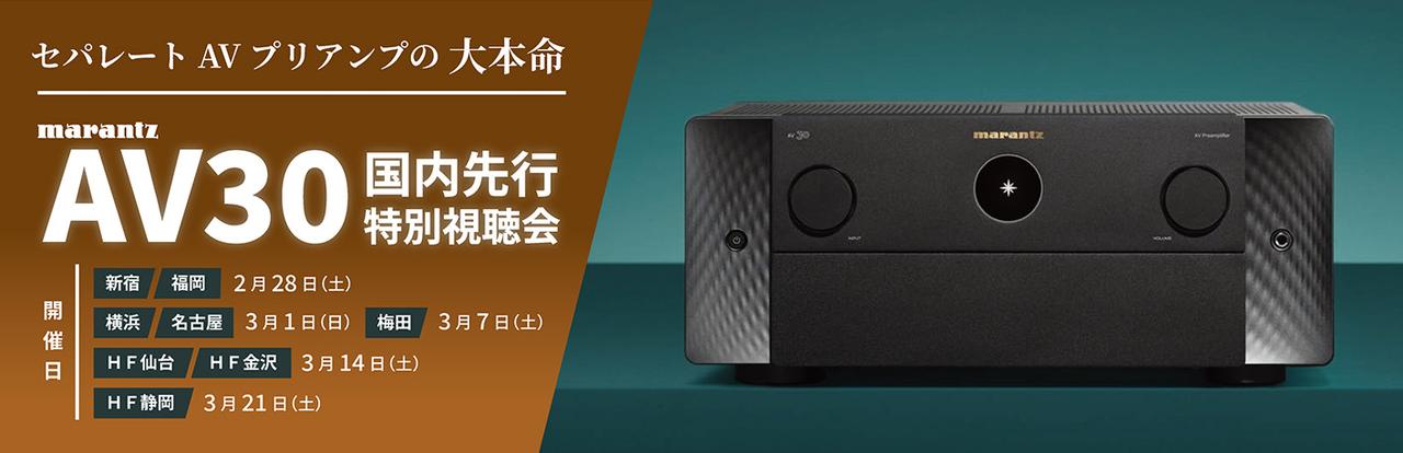 株式会社アバックは、marantzのAVプリアンプ「AV30」の特別試聴会を、本製品の3月上旬の発売に先駆け、全国8店舗にて2月28日(土) より3月21日(土) にかけて順次開催する。
