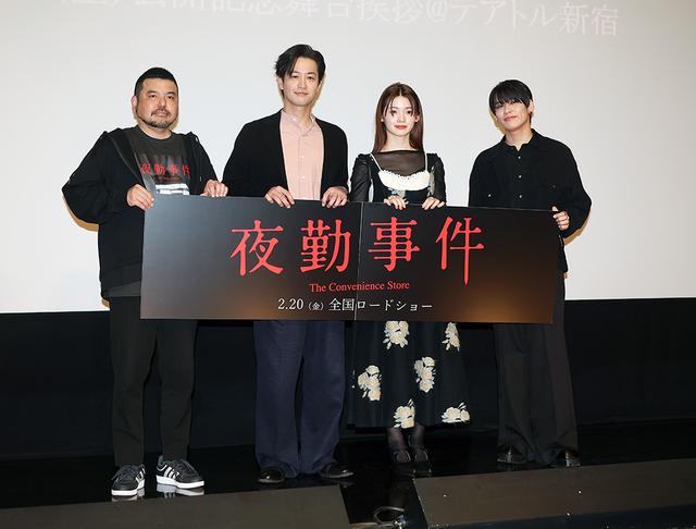 映画『夜勤事件』の公開記念舞台挨拶が2月21日、東京・テアトル新宿で行なわれ、主演の南琴奈、共演の竹財輝之助、関哲汰(ONE N’ ONLY)、メガホンをとった永江二朗監督が登壇した。