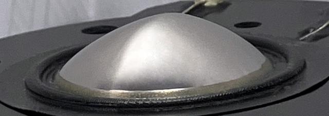 ●リッジドーム形状は、ボイスコイルからドームの頂点までの距離を一定にしないことで共振を分散。金属振動板ならではの高速レスポンスを実現しながらカラーレーションの原因となる固有共振を分散している。