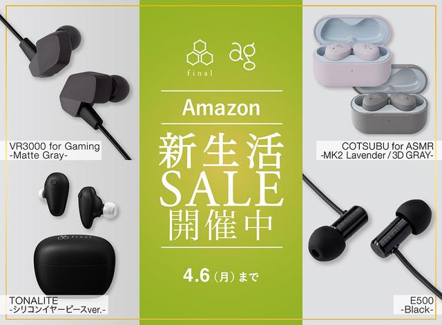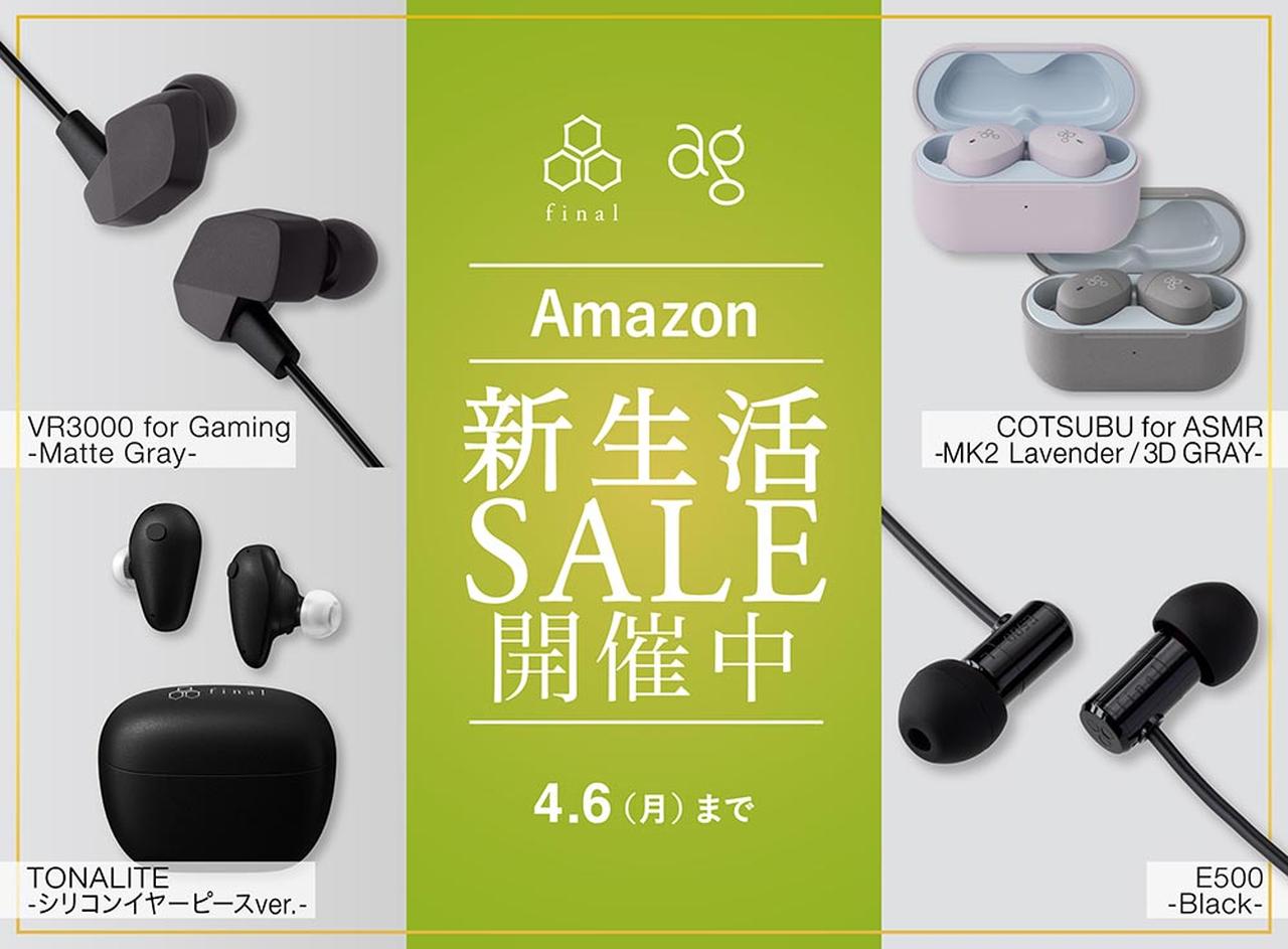 finalのフラッグシップワイヤレスイヤホン「TONALITE(シリコンイヤーピースVer)」や、agのASMR専用ワイヤレスイヤホン「COTSUBU for ASMR MK2/3D」等、注目製品がラインナップ。最大約20,000円OFFの製品も用意されているという。