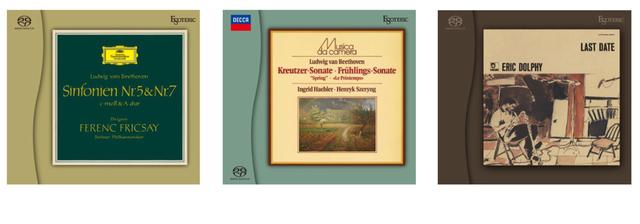 ラインナップは、『ベートーヴェン:交響曲 第3番《英雄》・第5番《運命》・第7番・《レオノーレ》序曲第3番・《エグモント》序曲』『ベートーヴェン:ヴァイオリン・ソナタ 第5番《春》・第9番《クロイツェル》・第4番』『エリック・ドルフィー / ラスト・デイト』。価格は、「ベートーヴェン:交響曲~」が6600円(税込)、ほかは各4,000円(税込)。
