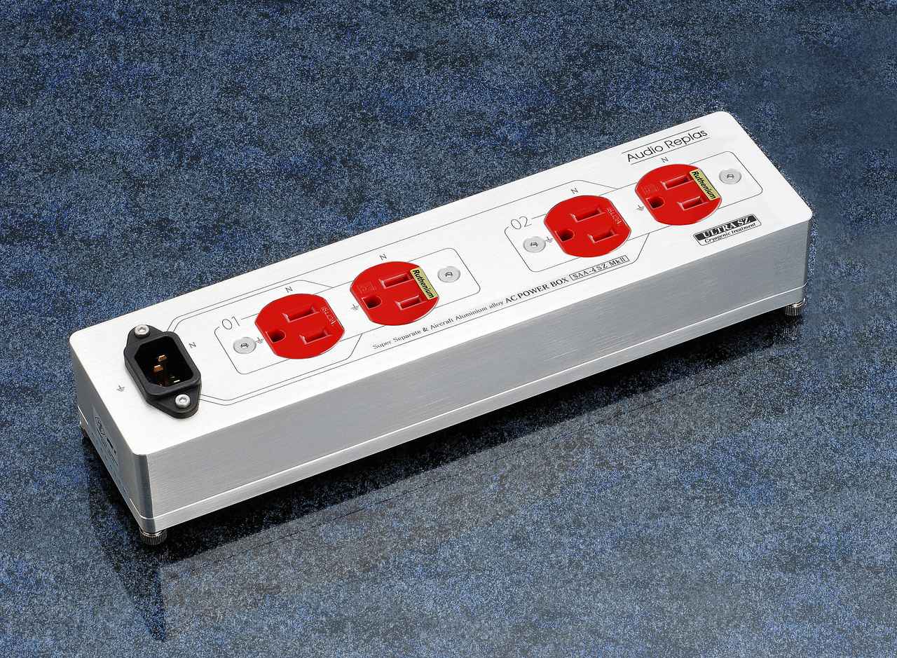 「SAA-4SZ-MK2-RU」は、航空機グレードのアルミ合金ブロックを削り出し、独立した空間層に個別配置することでS/N性能を高めた電源ボックス。内部構造は2セパレート構成の4個口モデルとなっている。